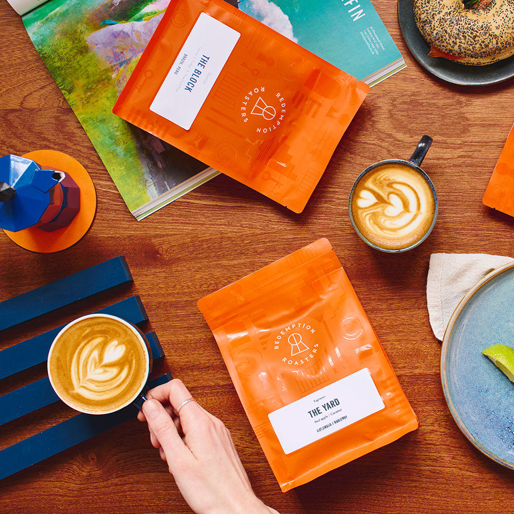 The Block is Redemption's classic espresso blend with notes of milk chocolate, caramel, and hazelnut, complemented by a touch of dried fruit sweetness reminiscent of raisins. Sourced from Brazil and Nicaragua, its rich, creamy body shines as an espresso, both on its own and with milk.